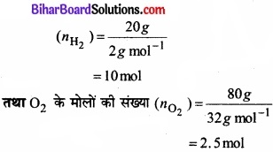 यदि मिश्रण में H2 का द्रव्यमान 20g हो तो O2 का द्रव्यमान 80g होगा।
