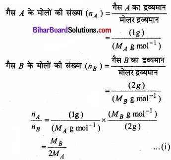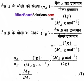 माना दोनों गैसों A तथा B के मोलर द्रव्यमान क्रमश: MA तथा MB हैं। दिए गए आँकड़ों के अनुसार,