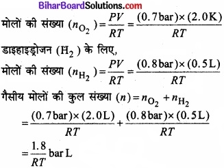 27°C ताप पर जब 1L के फ्लास्क में 0.7 bar पर 2.0 L डाइऑक्सीजन तथा 0.8 bar पर 0.5L डाइहाइड्रोजन को भरा जाता है तो गैसीय मिश्रण का दाब क्या होगा?
